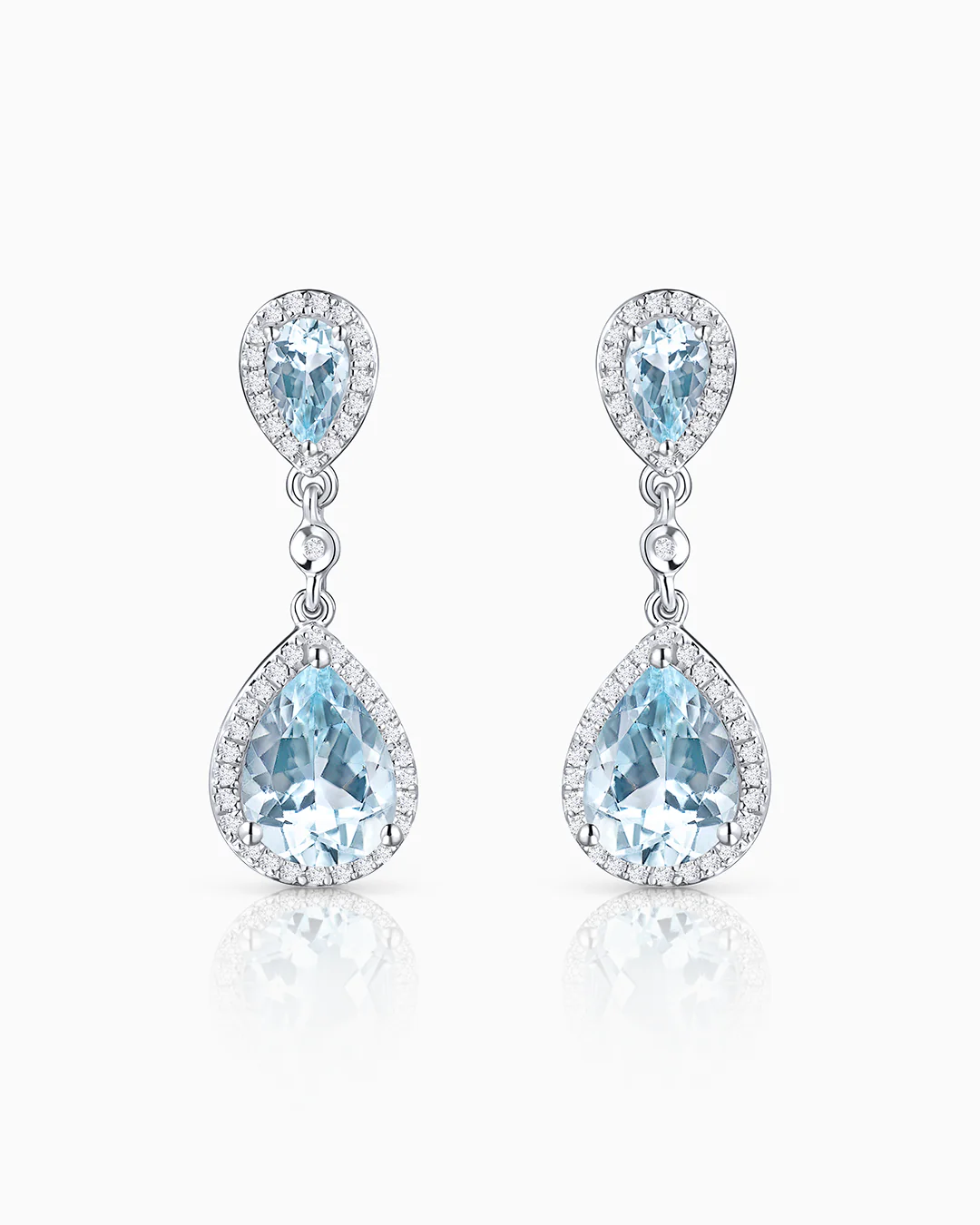 Pendientes Clarissa de Aguamarinas y Diamantes en Oro Blanco de 18 Kt