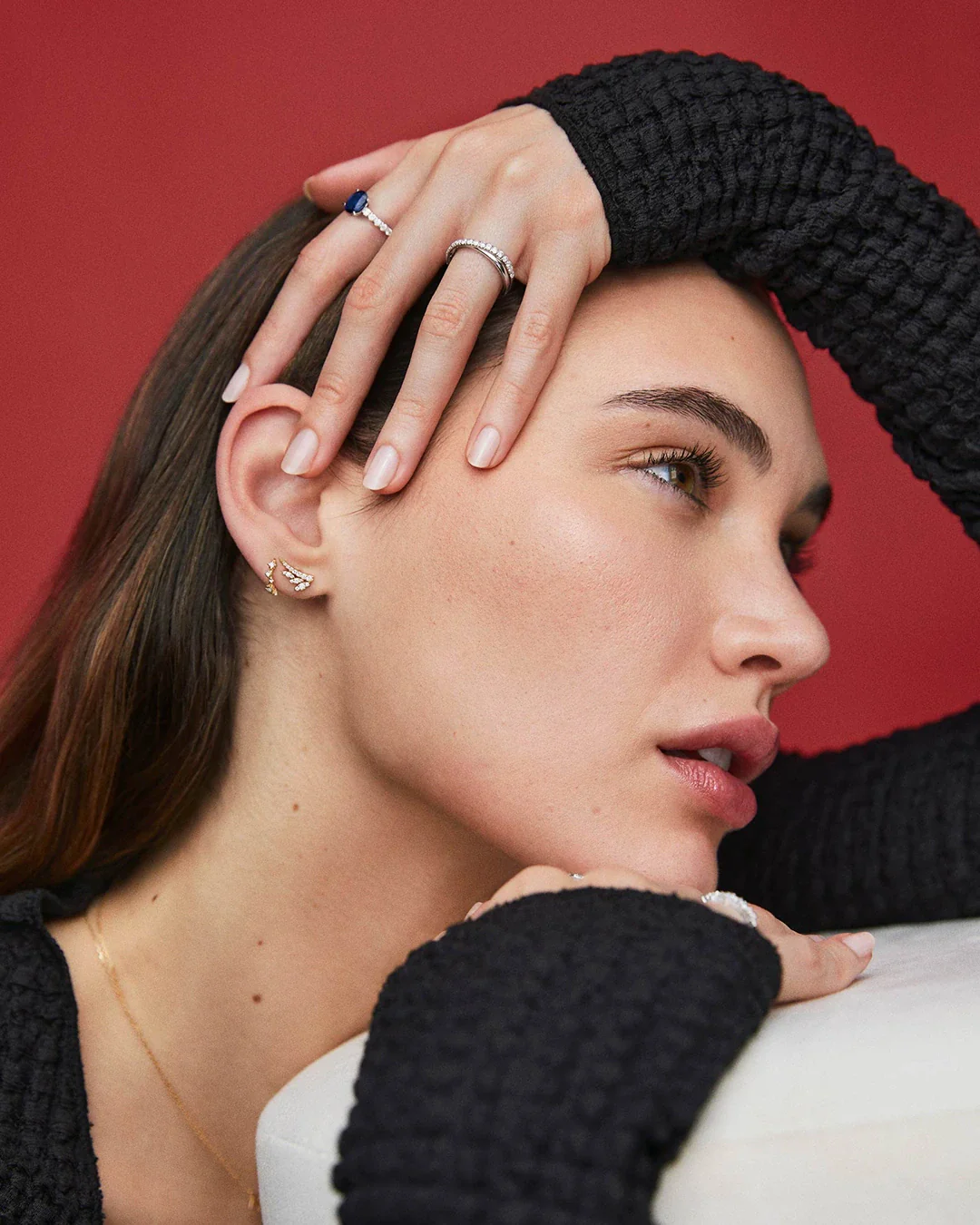 Pendientes Trepadores Tri-Marquise de Diamante y Rubí en Oro Amarillo de 18 Kt