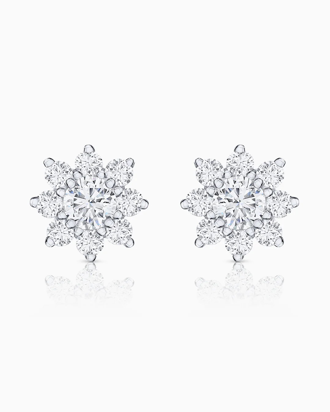 Pendientes Rosette Solitaire de Diamantes 1 Ct. en Oro Blanco de 18 Kt