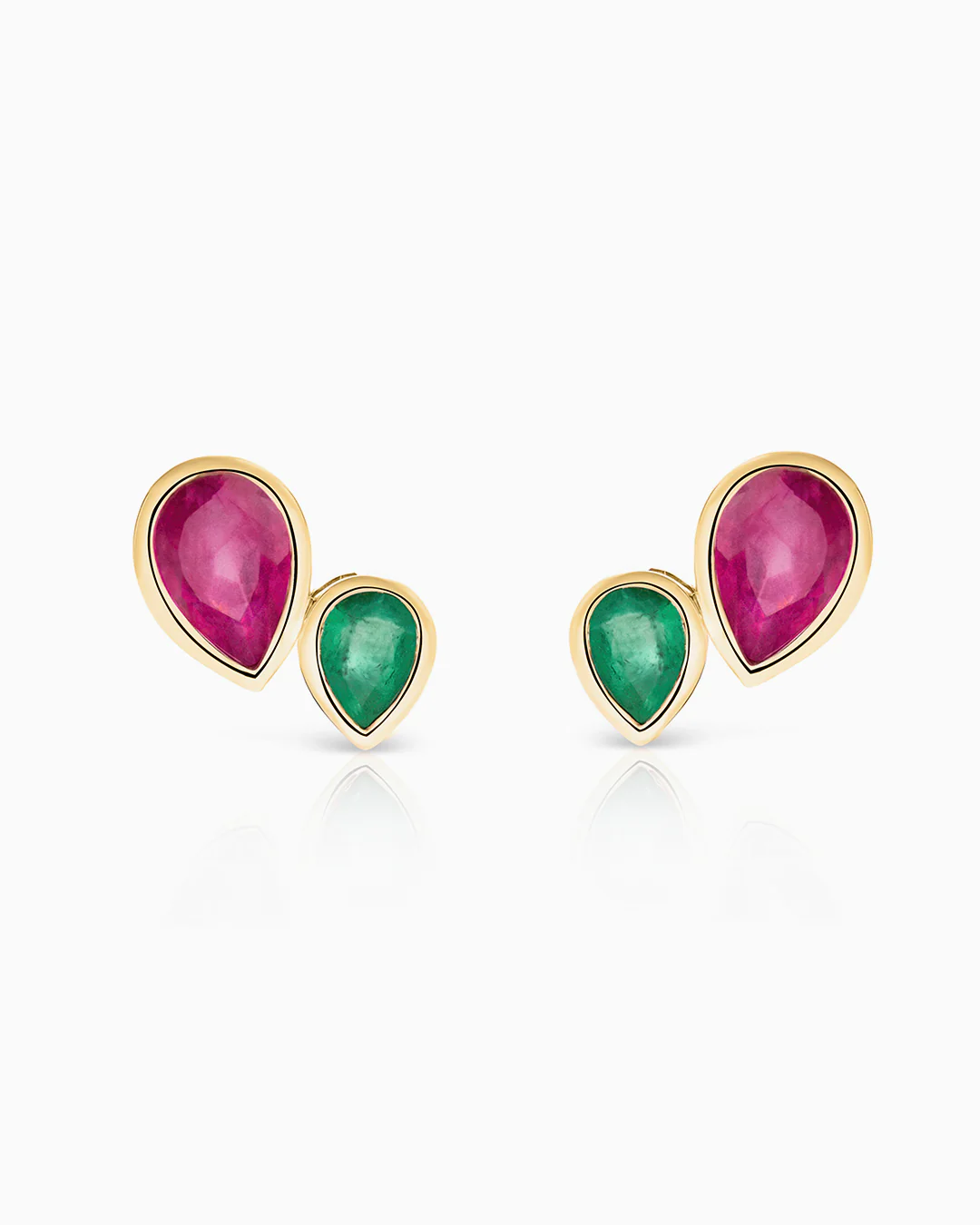 Pendientes Trepadores Nelis de Rubí y Esmeralda en Oro Amarillo de 18 Kt