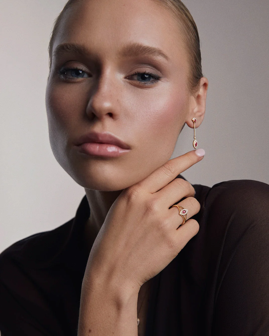 Sortija Art Deco Cleo de Rubí y Diamantes en Oro Amarillo de 18 Kt